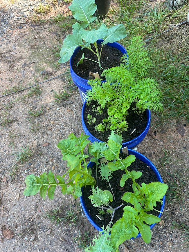 First year bucket garden. Had great yeilds with rich nutritious soil.
